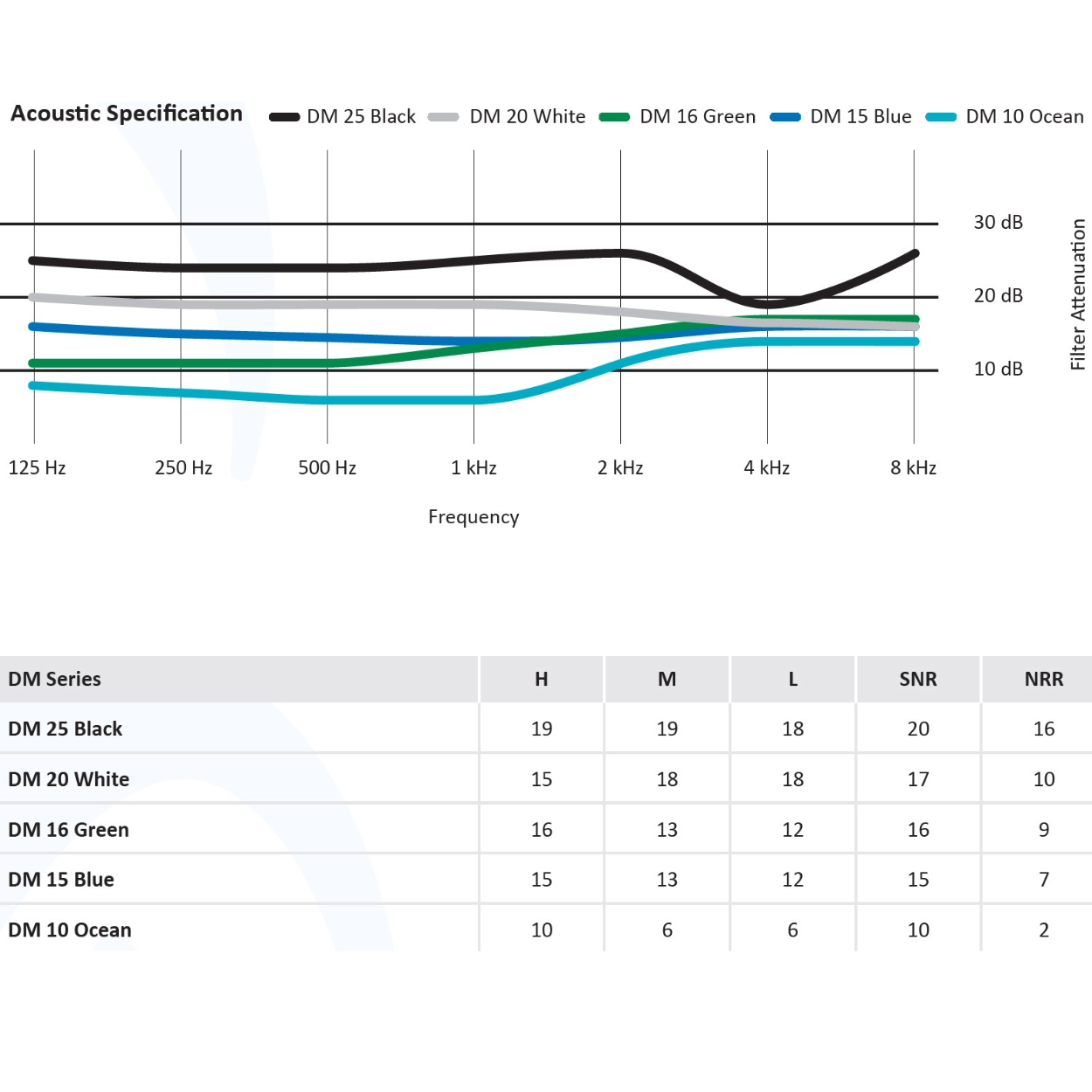 De DM-filters zijn beschikbaar voor zowel op maat gemaakte otoplastieken van siliconen als van hard acryl.